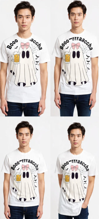 Celebra Halloween con estilo y sentido del humor con nuestro diseño “Booo-rraaccha”, una tierna fantasma con moño rosa sosteniendo una cerveza 🍺.